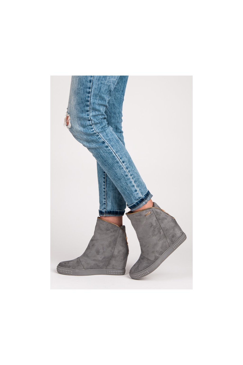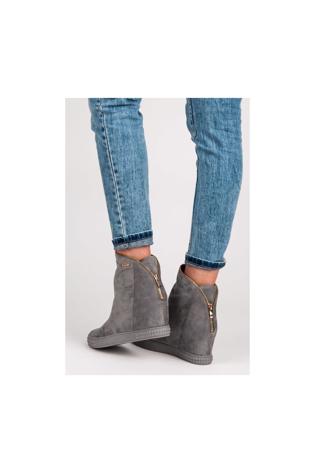 Sivé dámske trendy topánky na opätku, kód produktu NJSK 1133-6D.G