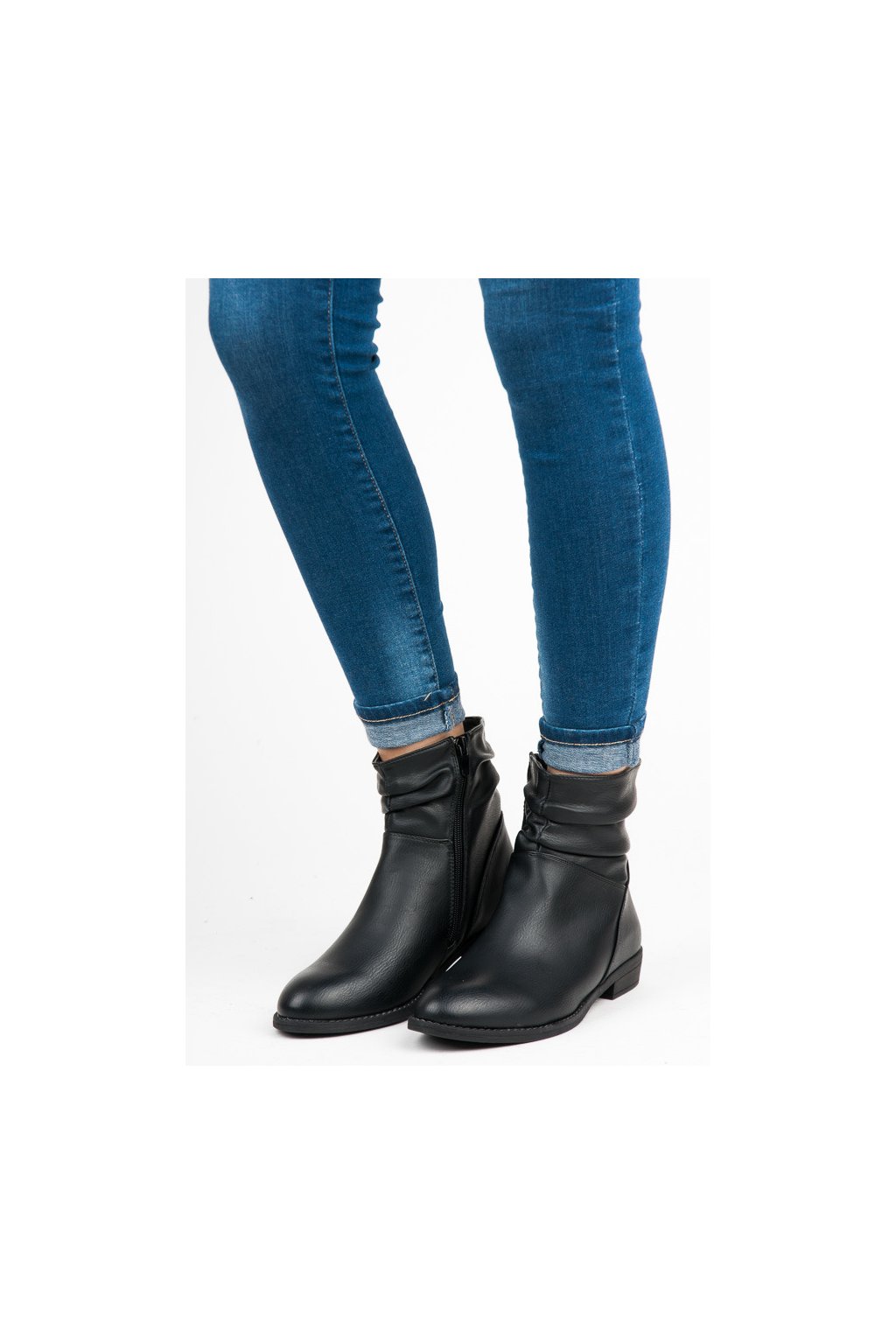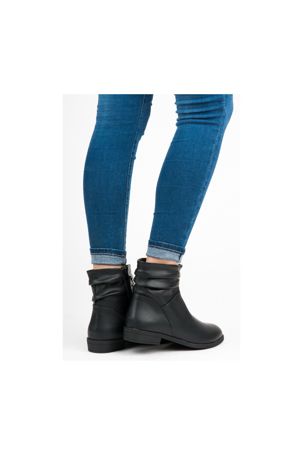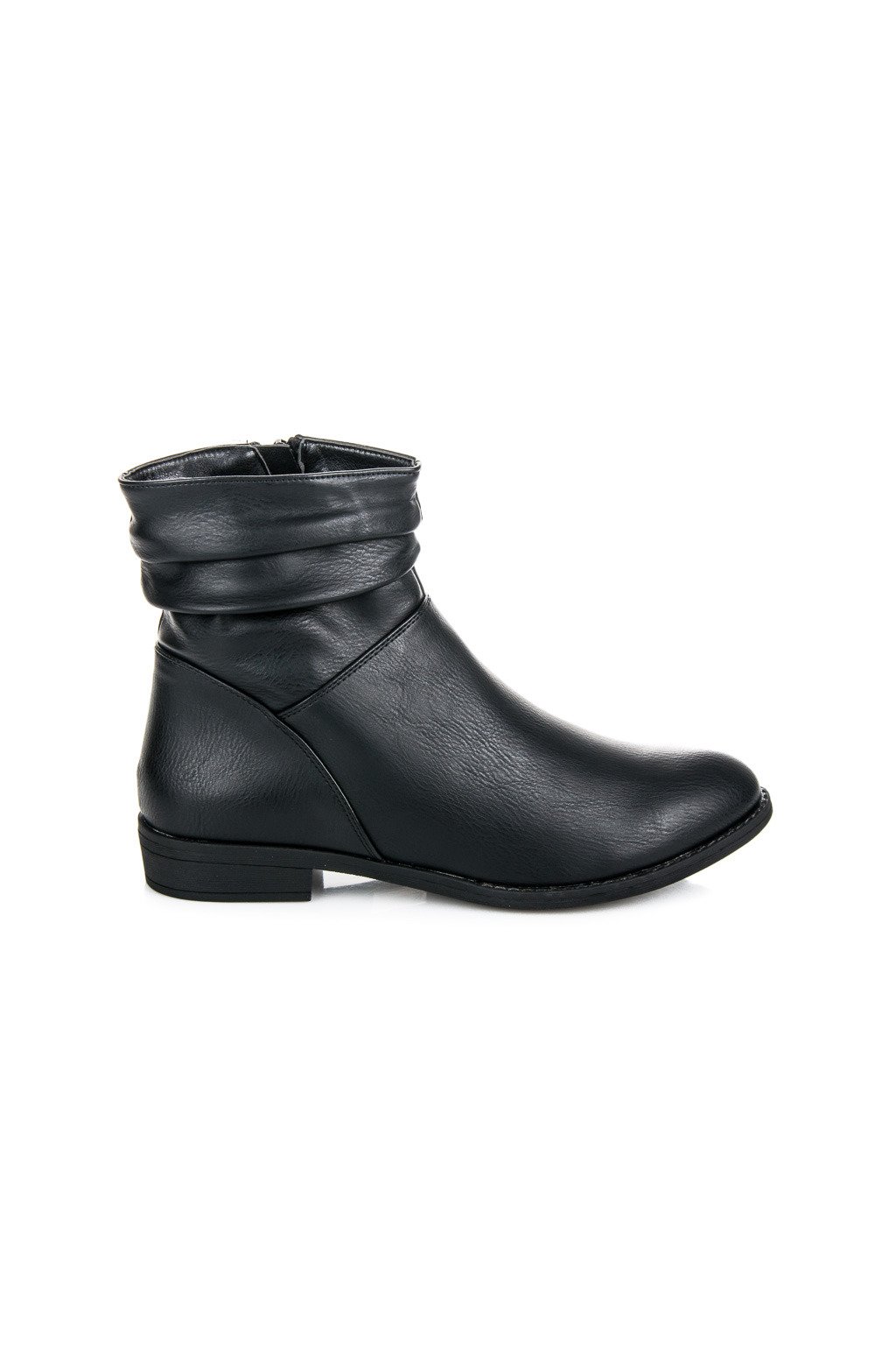 Čierne dámske členkové topánky z eko kože na zastavanej päte s plochým opätkom 2cm, kód produktu Vanesa 302-1B