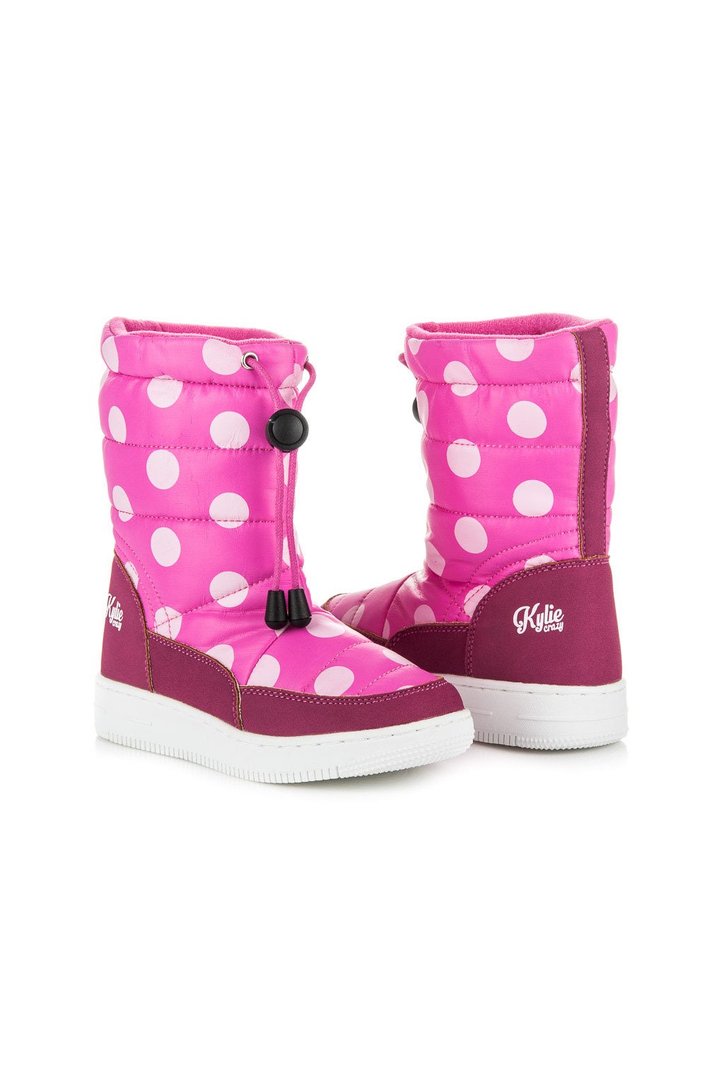 Ružové dievčenské bodkované snehule s textilnou výstelkou a guličkovým vzorom, platforma 2,5 cm, kód produktu K1646109RO