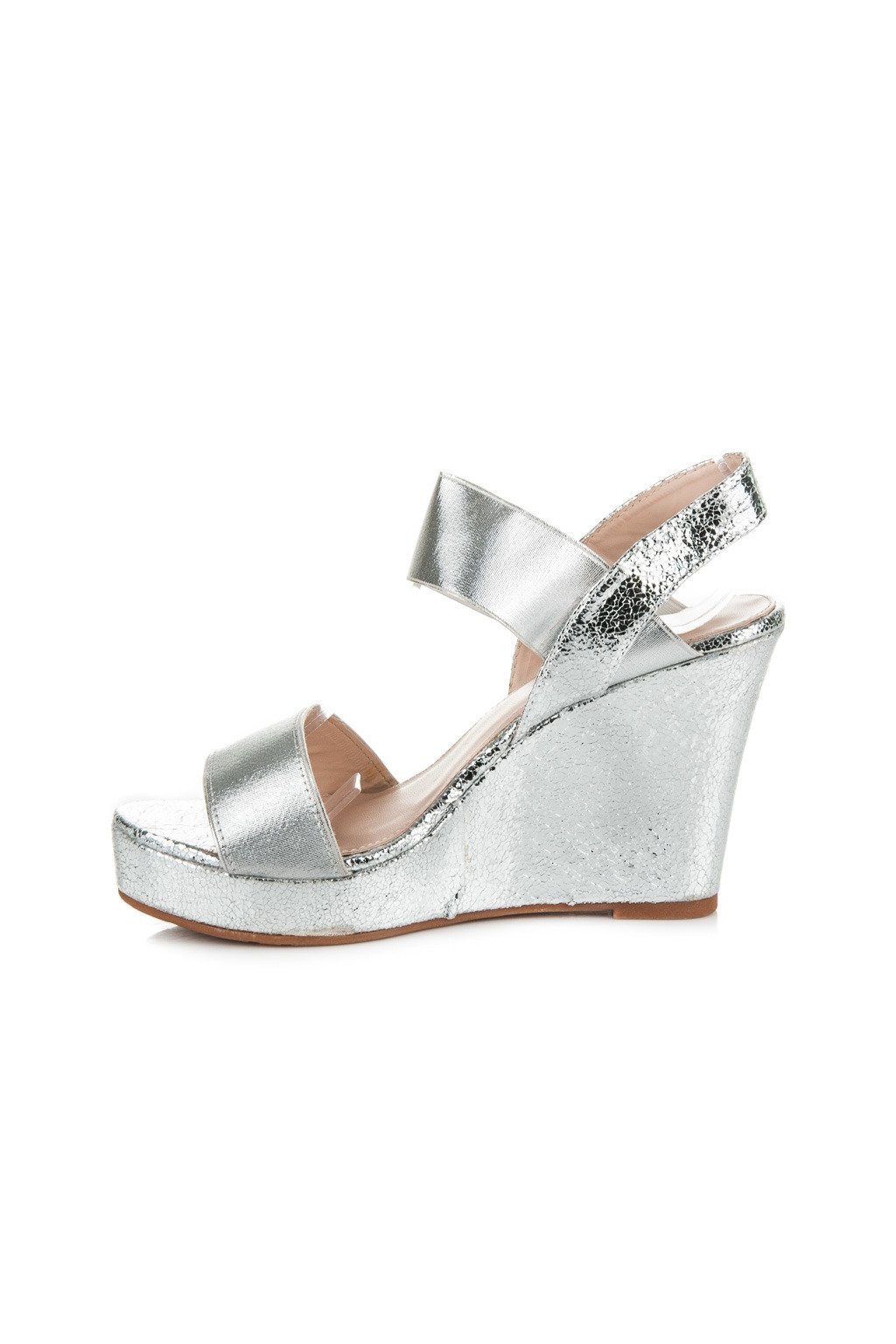 Strieborné dámske sandále na platforme s otvorenou špičkou a opätkom 12,5 cm, s eko kožou, kód produktu F5001S