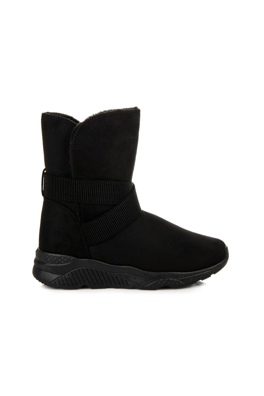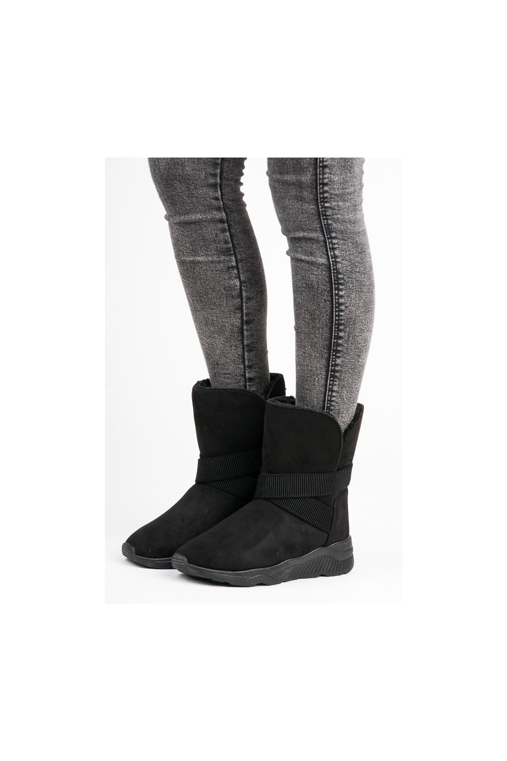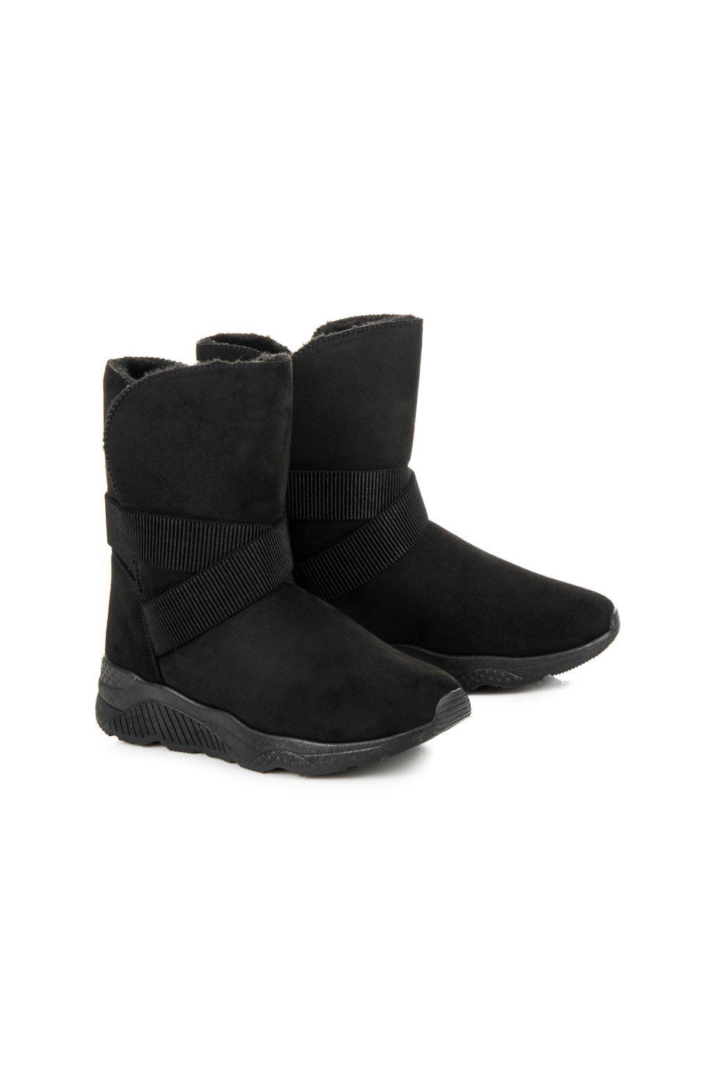 Čierne dámske módne kožušinové snehule z eko semišu na zastavanej päte a platforme 4cm, kód produktu CNB R149B