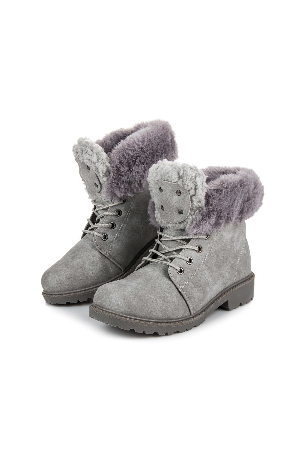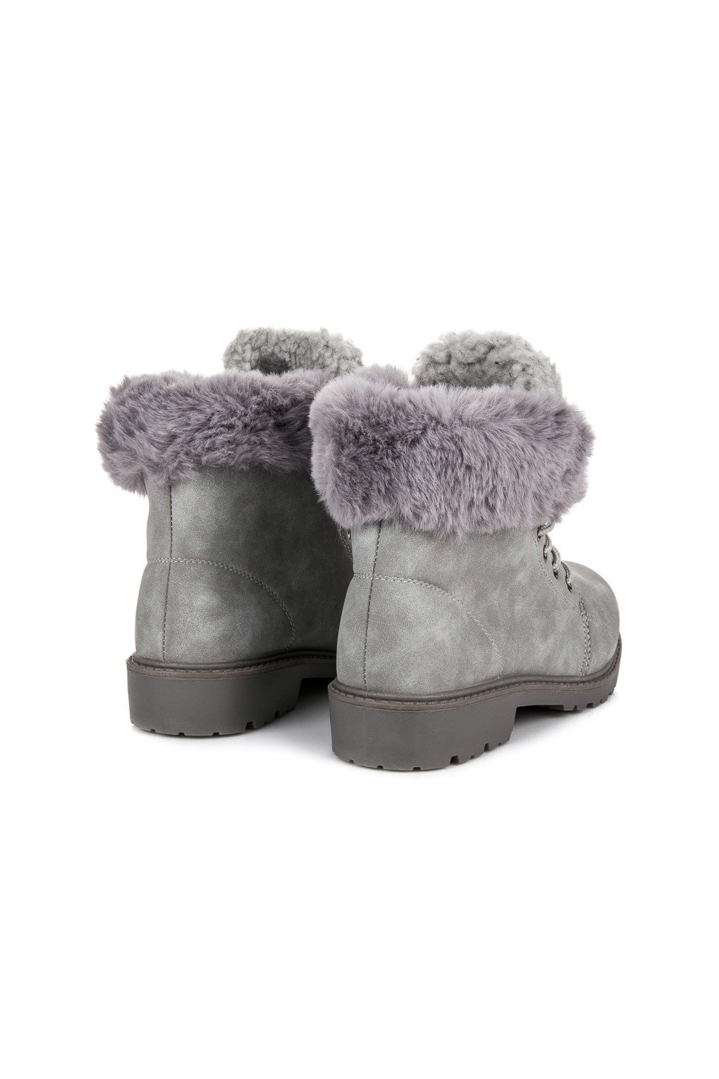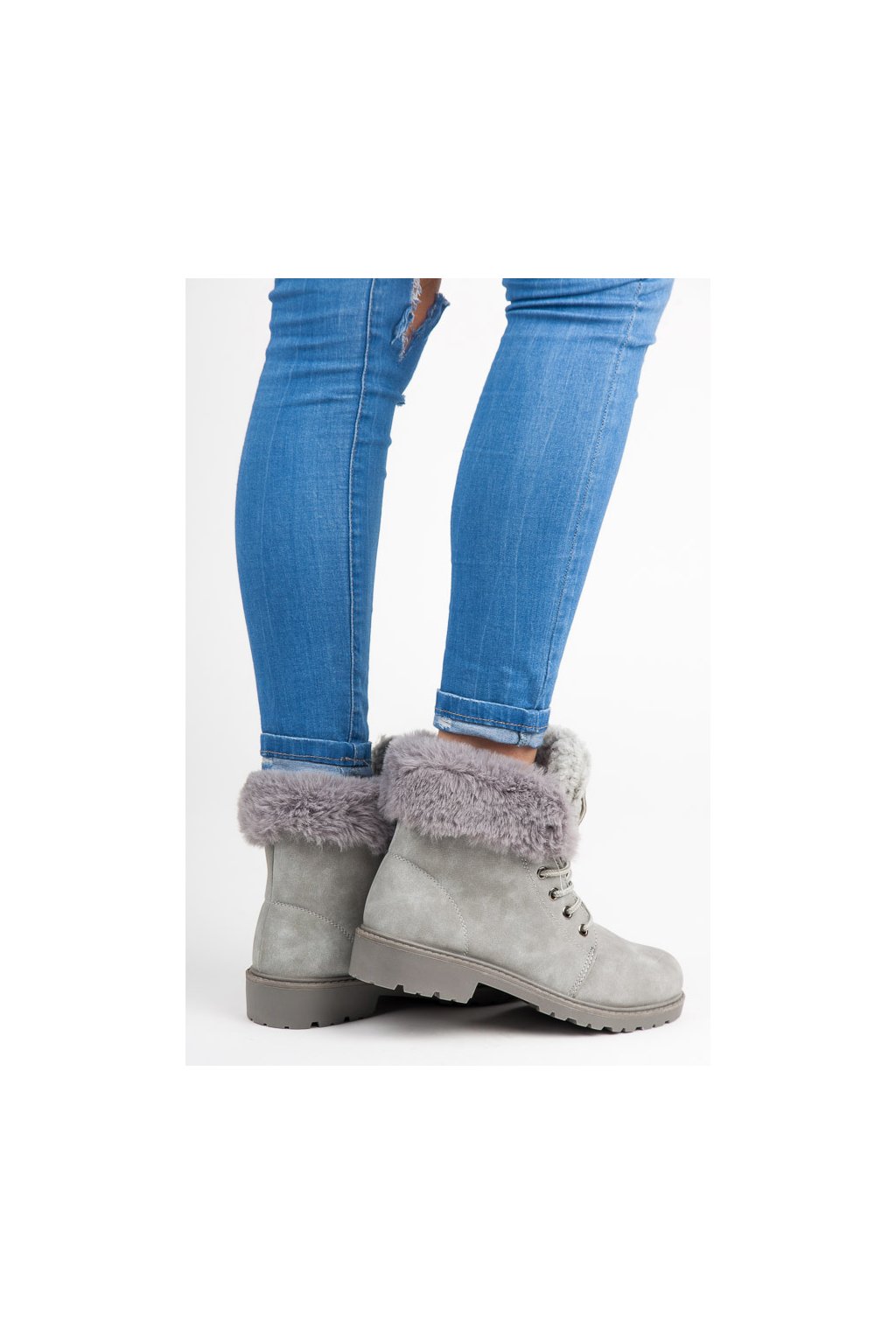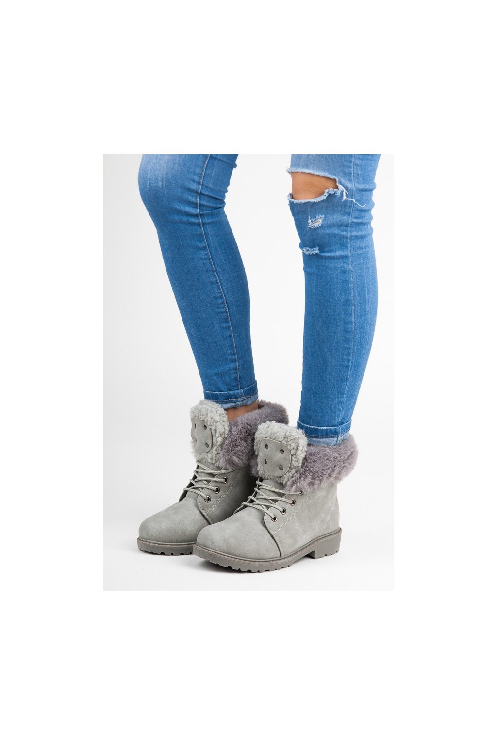 TYP: Módna obuv, Trapery, Členkové topánky, Členkové čižmy, Sivé trapery, Trapery s kožušinou