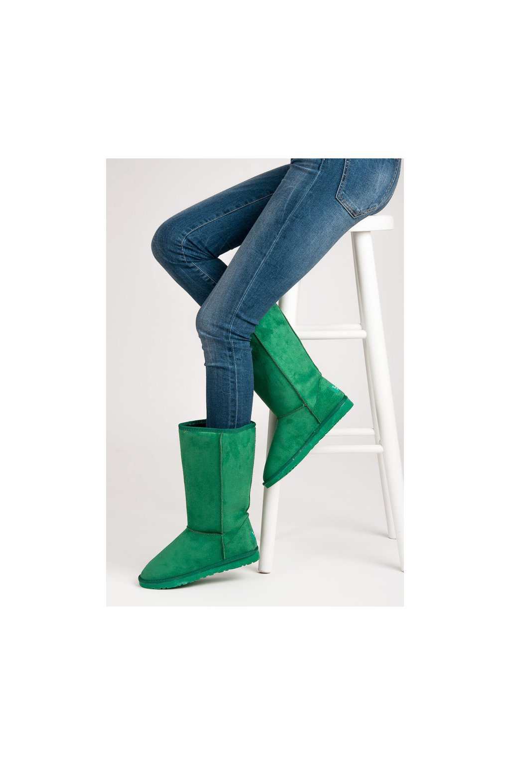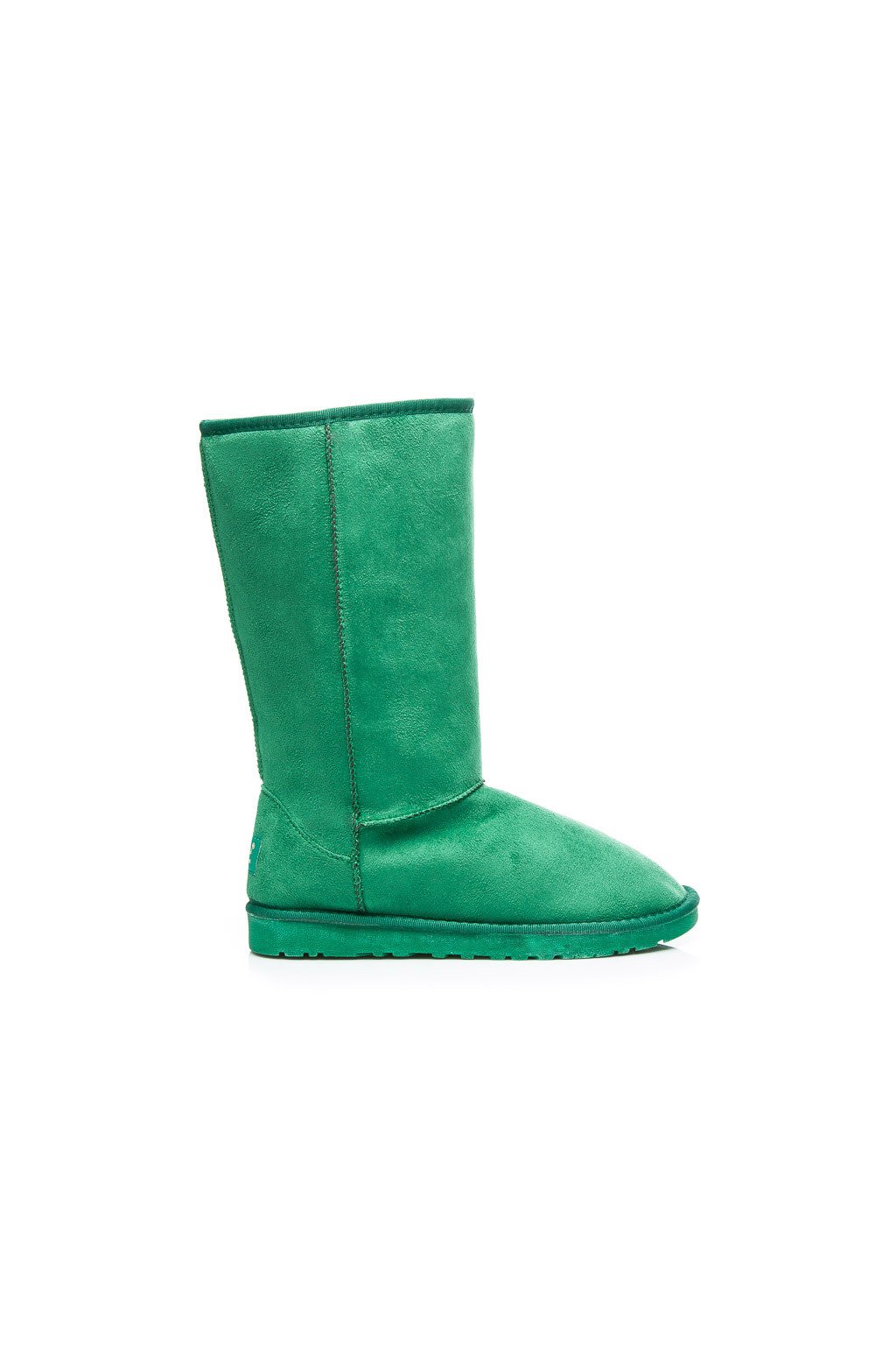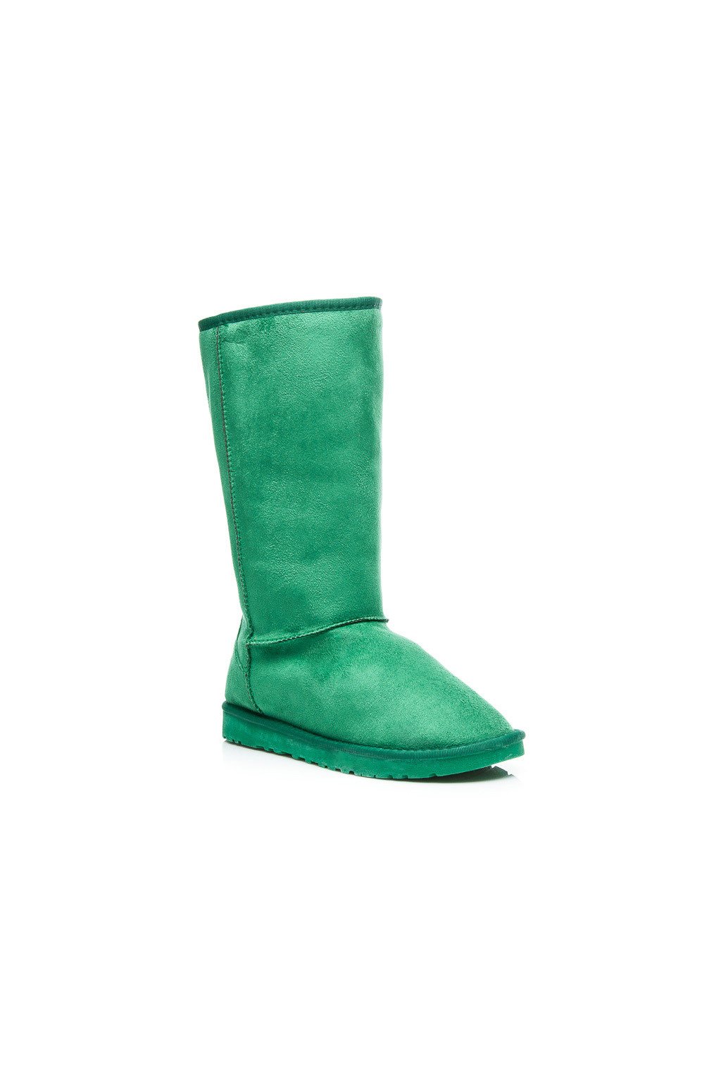 Zelené dámske semišové zimné snehule s kožušinkou na vsúvanie, kód produktu 109GR / S1-83P