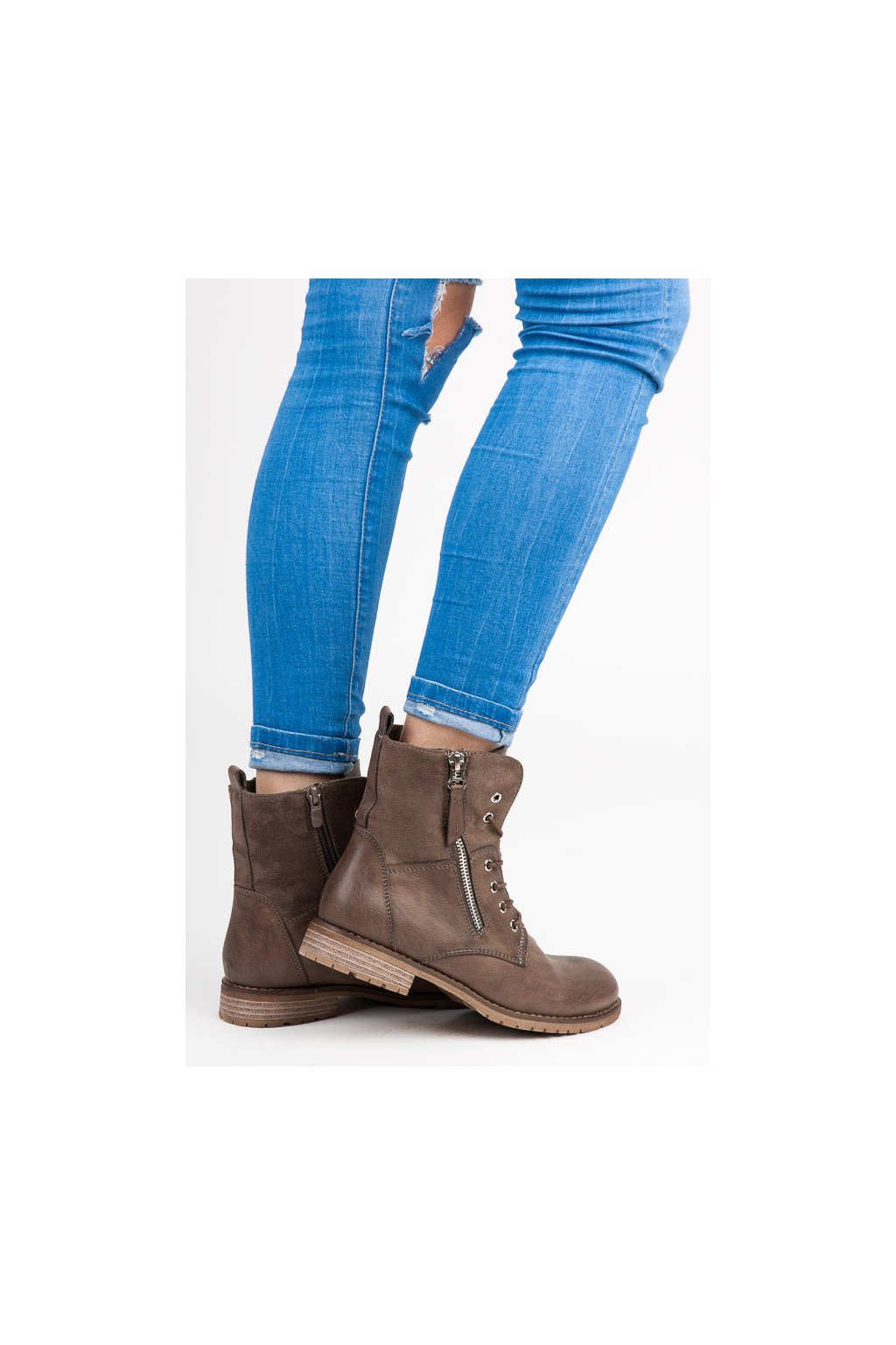 Béžové dámske módne workery z eko kože na nízkom podpätku s vystuženou pätou, kód produktu Olympia B8381KH
