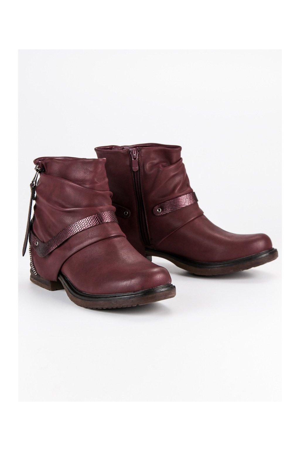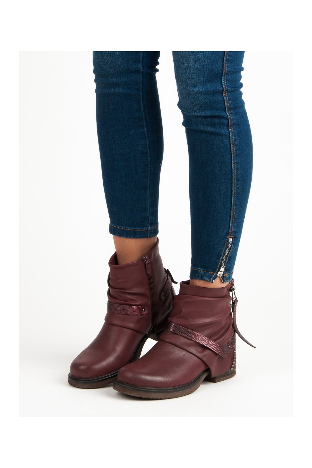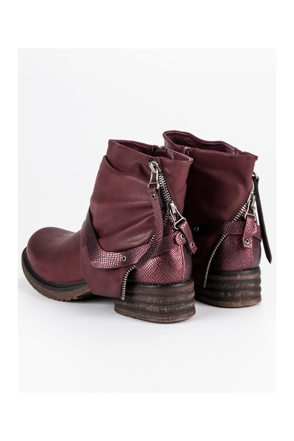 Bordové dámske semišové workery s motívom zvieracej potlače na zips, kód produktu BZ8380WI