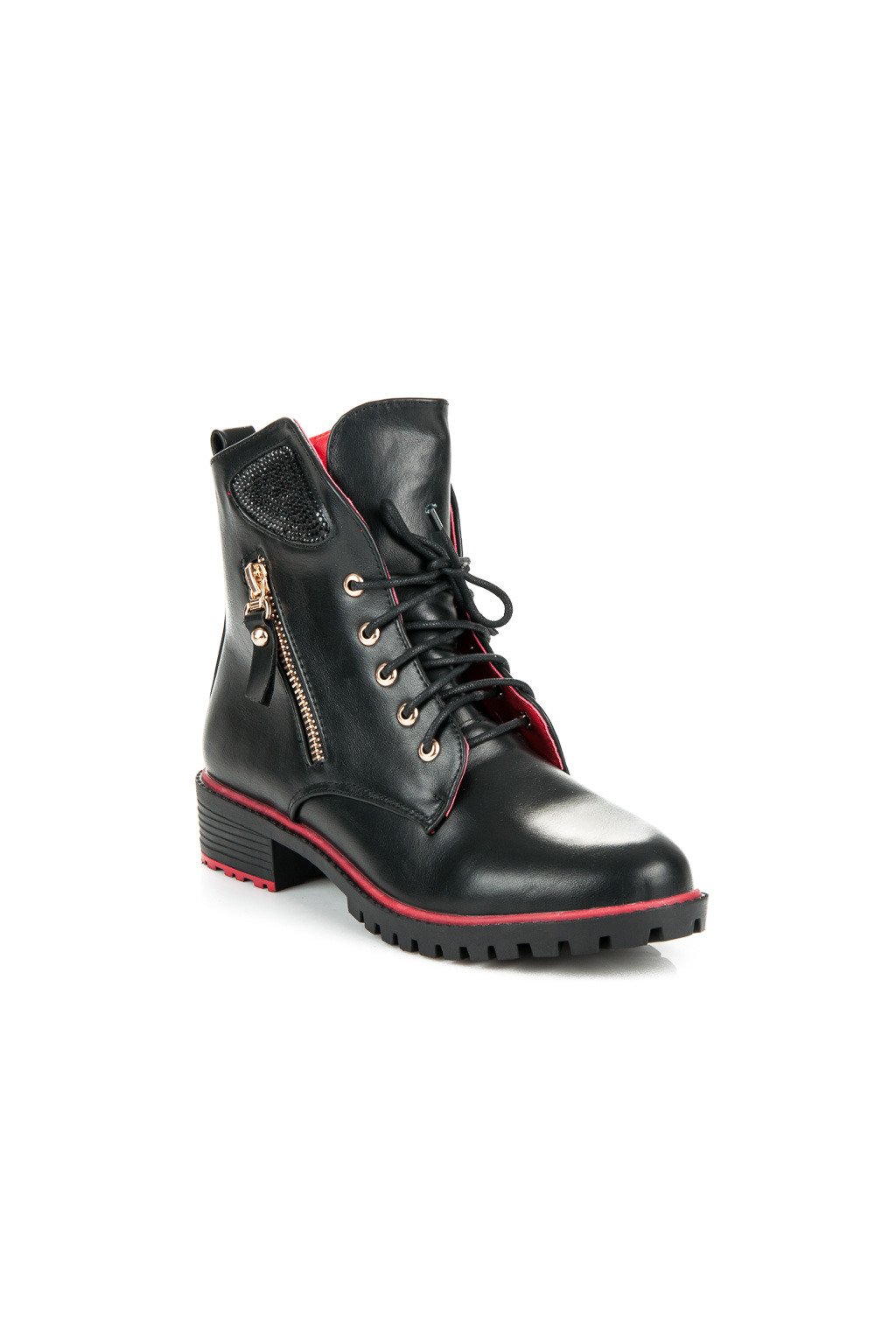 Čierne dámske traperky s kamienkami na plnej špičke a opätku 4,5cm, kód produktu AFK-753B