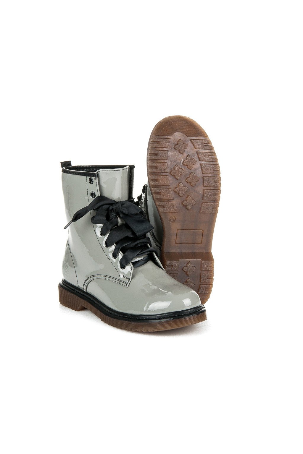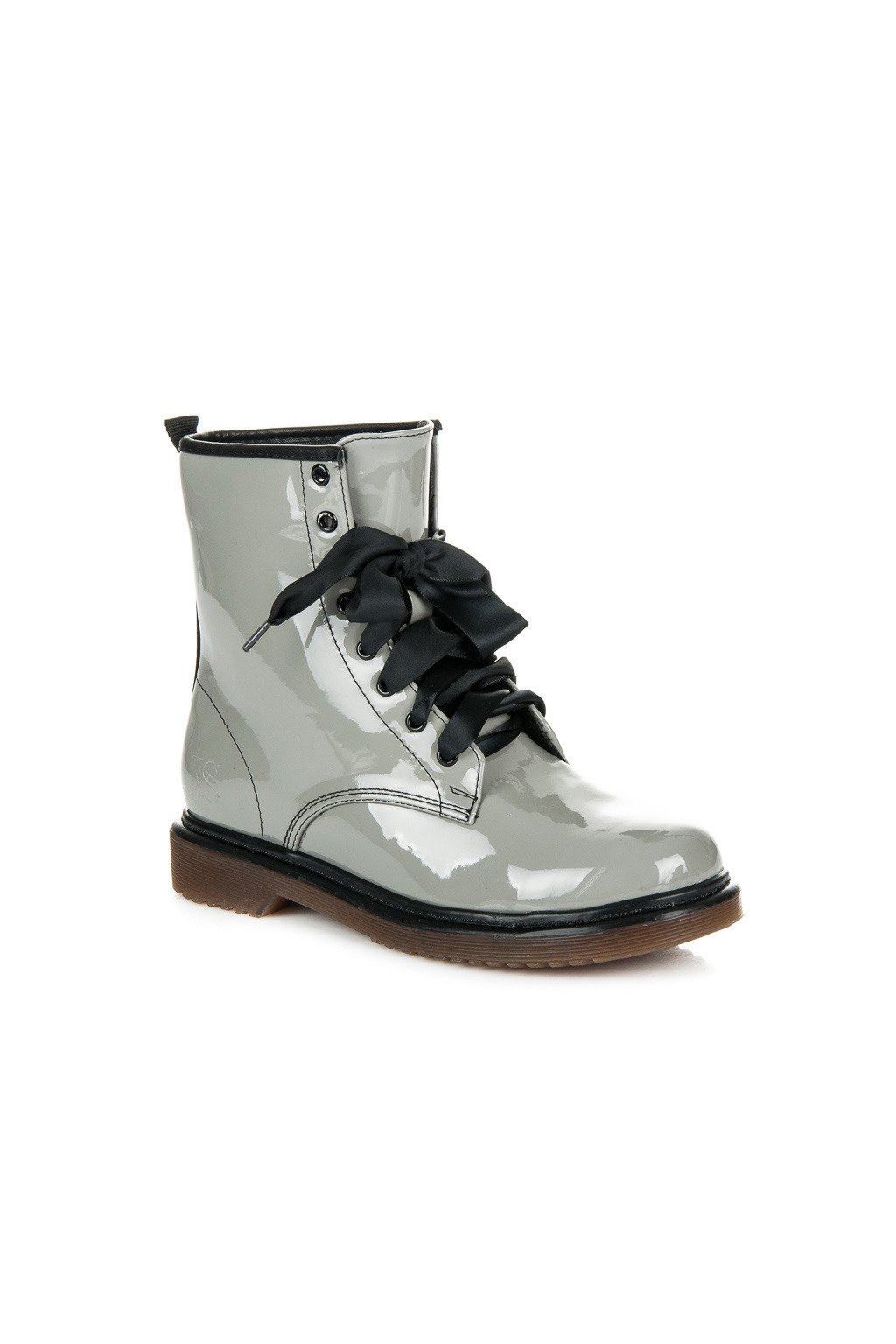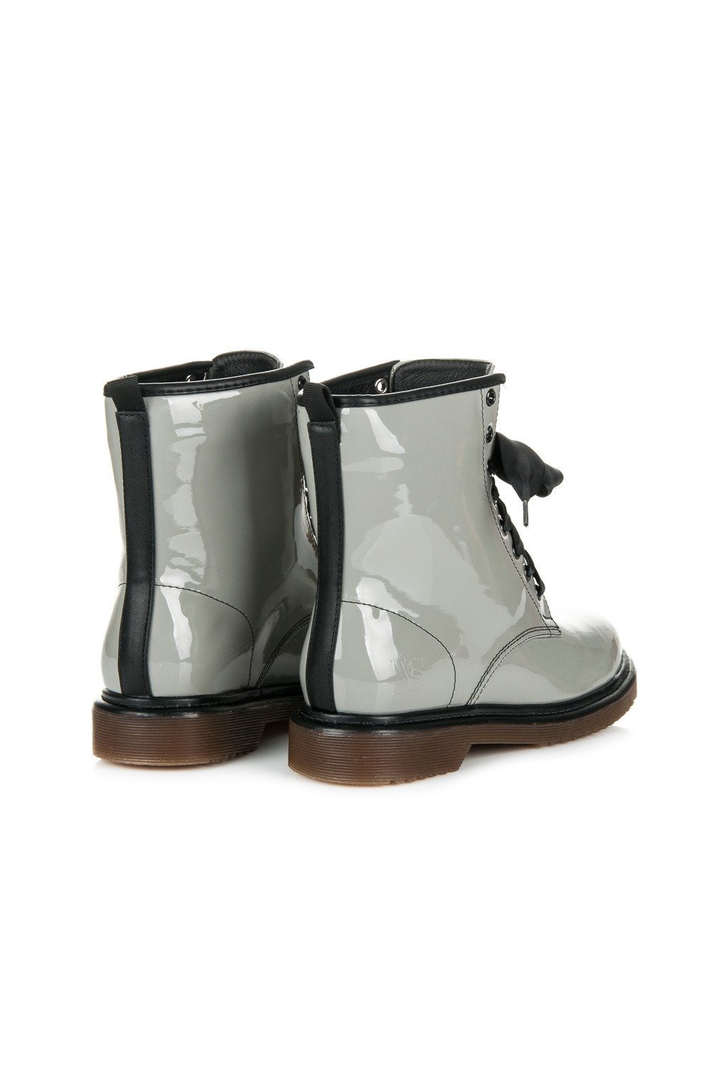 Lakované sivé dámske workery z eko kože na nízkom opätku 2,5 cm, kód produktu 6149-5G
