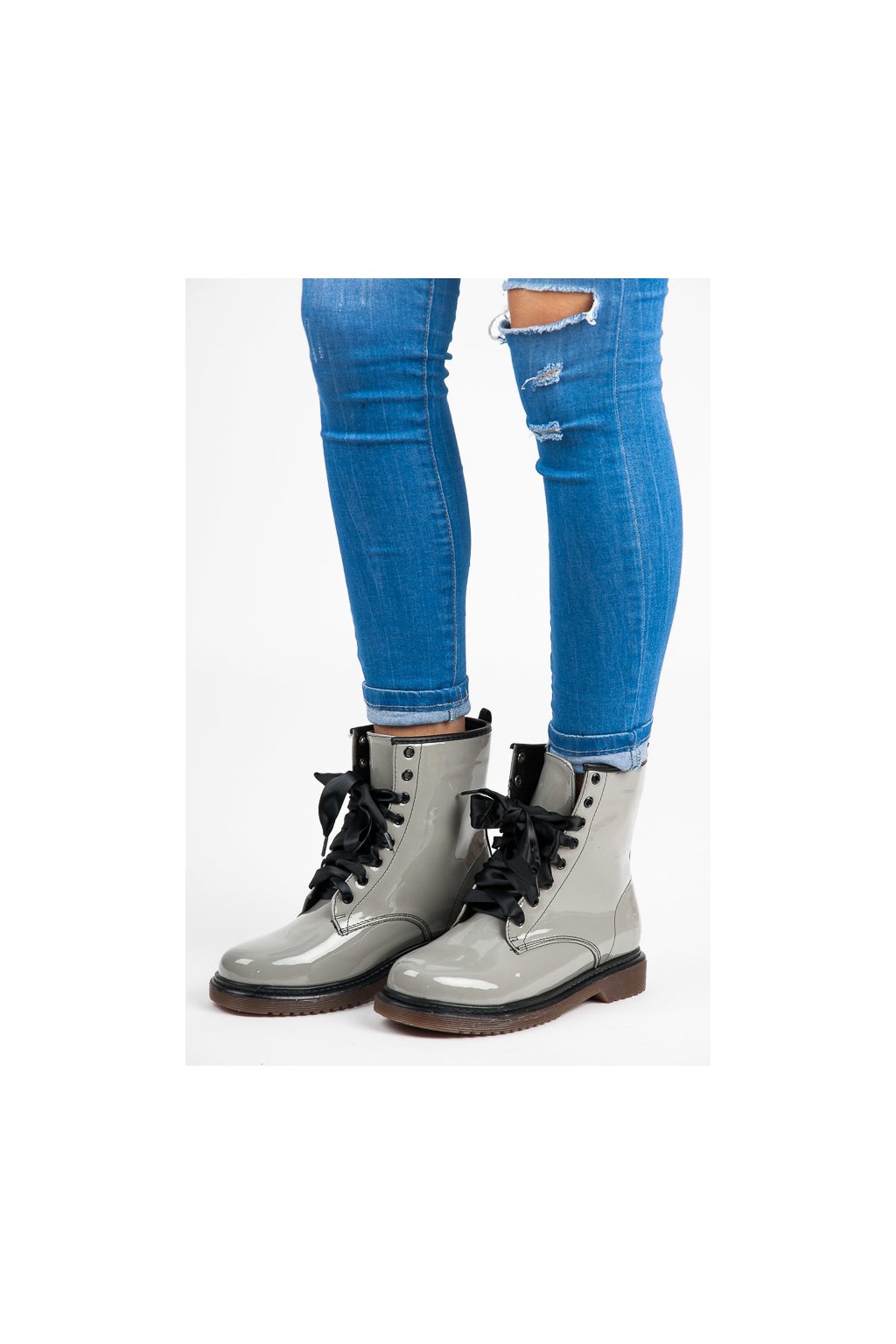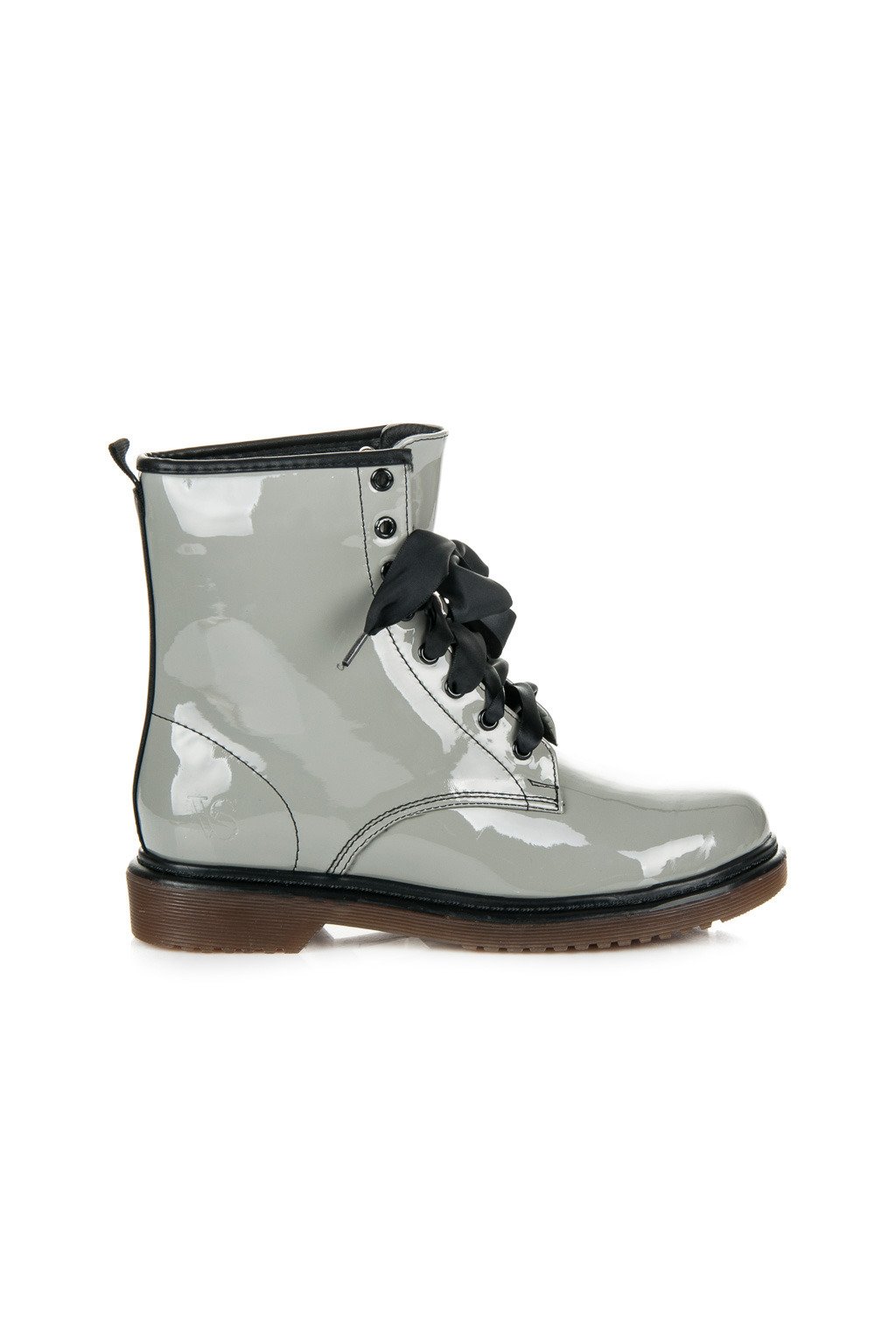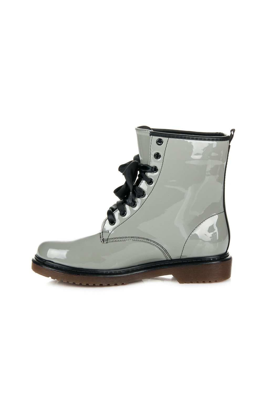 Lakované sivé dámske workery z eko kože na nízkom opätku 2,5 cm, kód produktu 6149-5G